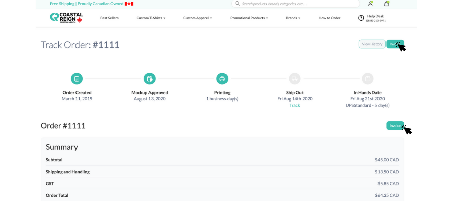 You can download the invoice for your order from your tracking link. Click the "Invoice" button on the top right of the track order page. View photo below for an example.