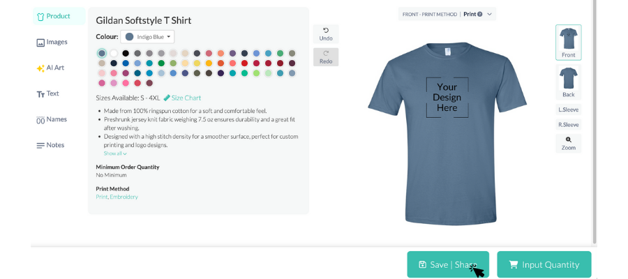 To save your design, click the Save/Share button on the designer page, located near the bottom right of the page. Fill out the name of the design, your name and the email information and press save design. Once your design is saved, you will receive an email containing images of your design, as well as a link to edit your design at a later time.